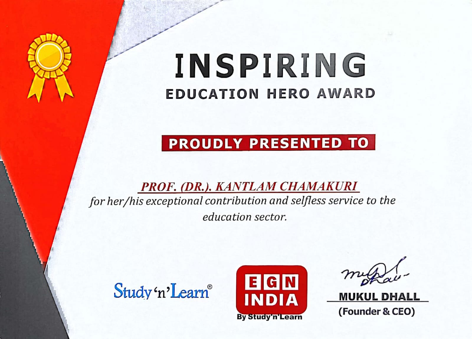 Sri Kasireddy Durga Prasad Reddy receiving the “Education Change Maker” Award